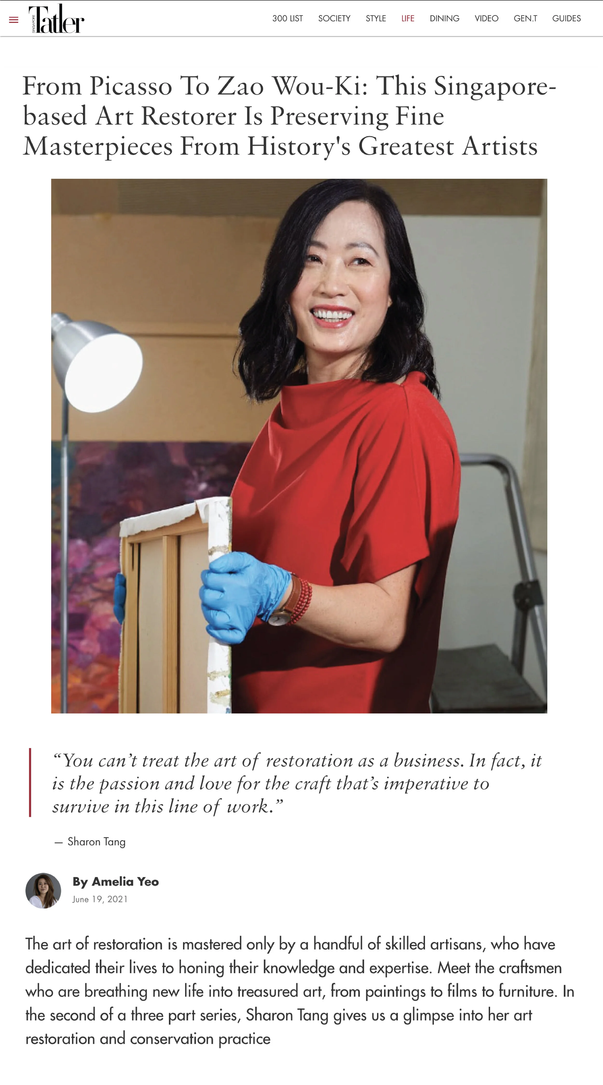 Sharon Tang has been restoring painting for over 20 year for clients like Sotheby’s, Christie’s, National Gallery Singapore and numerous private collectors in the region.